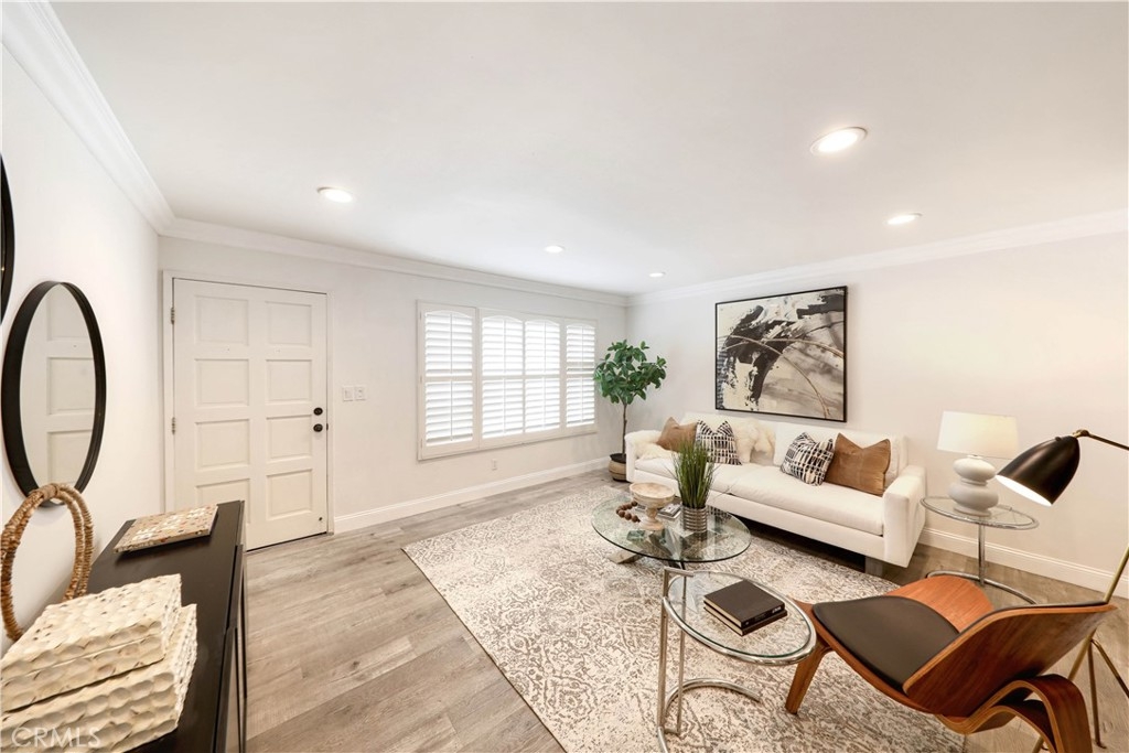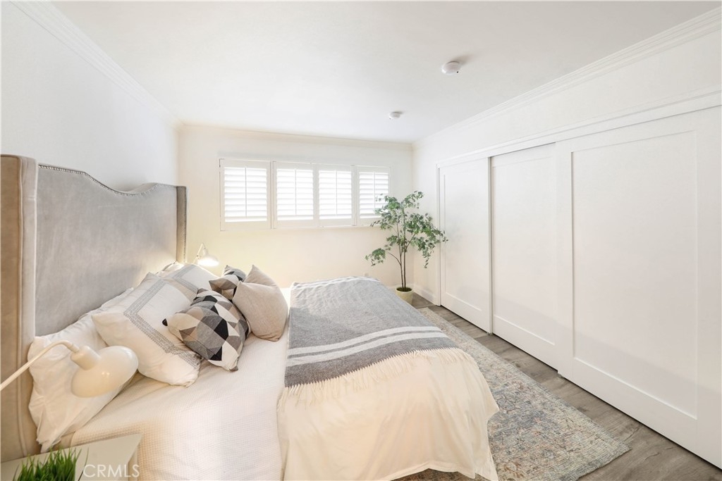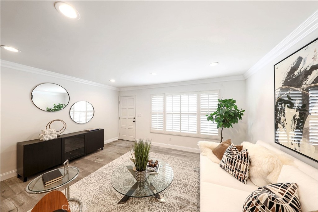 Welcome to your charming Santa Monica retreat at 837 11th Street #3. This exquisite one-bedroom, one-bathroom residence features luxury vinyl flooring, recessed lighting, plantation shutters, and crown molding throughout, creating an inviting and sophisticated ambiance. The updated kitchen is a chef's delight, boasting quartz countertops, a designer backsplash, a barn sink, a dishwasher, microwave, and refrigerator, as well as self-closing cabinets for added convenience. The master bedroom features new closet doors, adding to the modern appeal of the home. Additionally, enjoy the convenience of an LG stackable washer & dryer, one car parking spot, and storage in a covered carport. Located in a desirable area, this home offers a comfortable and stylish living experience, with the added convenience of being close to beaches, shopping, and restaurants on Montana Avenue and the vibrant Third Street Promenade. Don't miss the opportunity to make this gem your own!