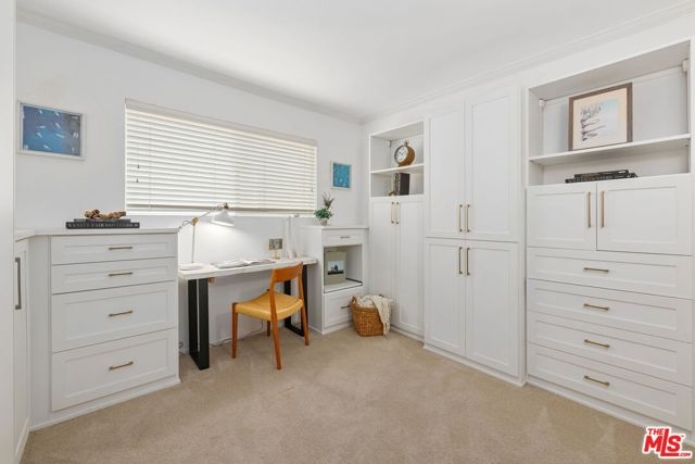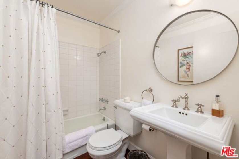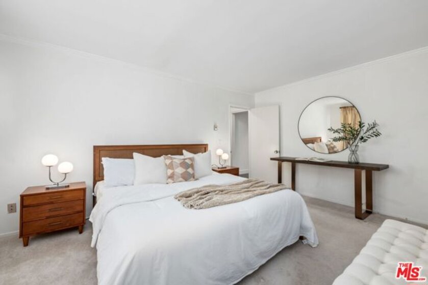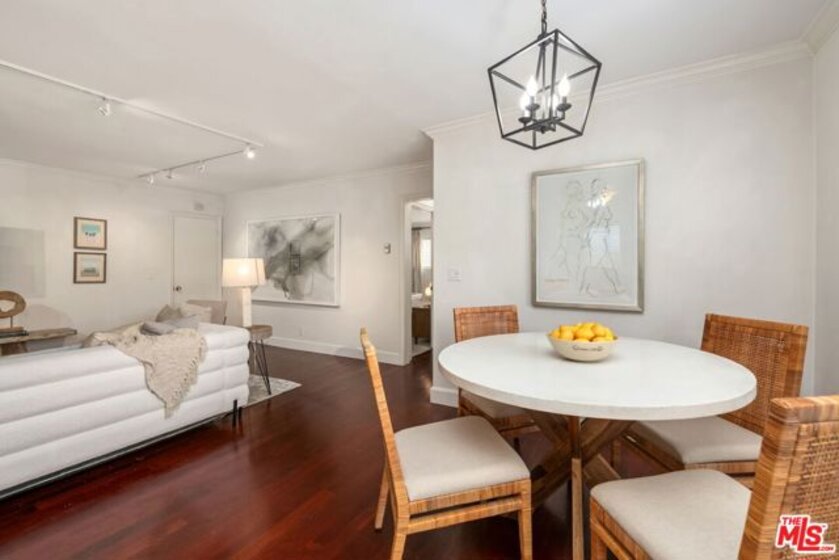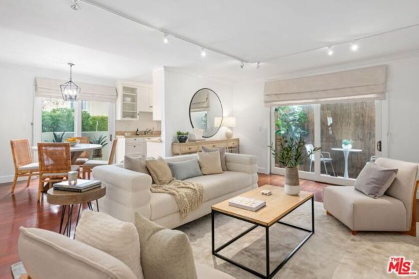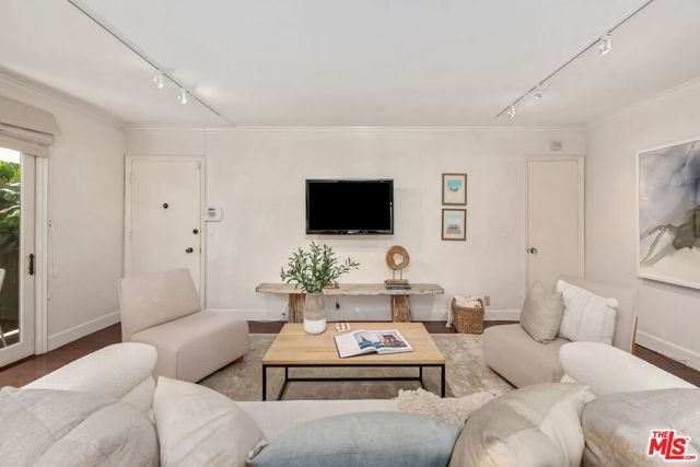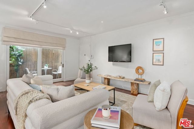 Santa Monica jewel just blocks from the beach! One of Santa Monica's most coveted spots is host to this chic two-bedroom, two-bath condominium where delightful Montana Avenue and its fabulous shopping and dining are but a moment away. This location is a true village where everything one might need, including a quick visit to the ocean, just blocks away, is right there. Living here at 844 7th Street affords an easy, coastal, urban lifestyle rarely found anywhere in Los Angeles. Special only begins to describe it. This front-facing unit brings in natural light through sliding glass doors leading out to two rarely found private terraces. The very tasteful, gallery-like living area, with its dark hued wood floors, crown molding and crisp white walls, has strategically placed lighting for art. The dining area leads to the tastefully updated kitchen complete with glass-doored cabinetry, perfect for showcasing beautiful kitchen and dining ware. The primary bedroom has ample walk-in closet space and a lovely, updated ensuite bath with tumbled marble. The secondary bedroom has a wall bed and extensive built-ins allowing for either an office or bedroom choice. An updated hall bath completes the floorplan. Very generous storage space. Don't miss this rare opportunity offering Santa Monica lifestyle at its finest!