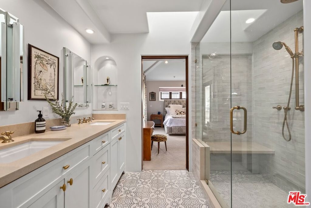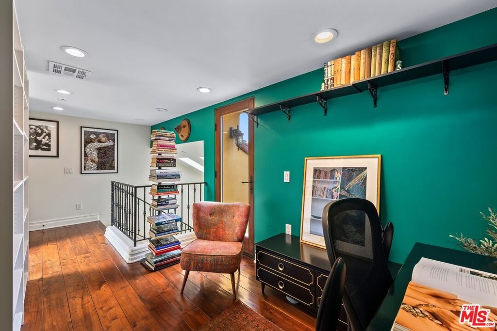 MOTIVATED SELLER. Discover this charming townhouse nestled in the heart of Santa Monica's coveted Bella Casa, an intimate community of just eight townhomes a stone's throw from Montana Avenue. This corner unit features a comfortable living and dining area that flows seamlessly through the entryway with stone imported from the South of France into a recently upgraded chef's kitchen, showcasing luxurious Calacatta gold marble slab countertops, breakfast bar, and top-of-the-line Viking appliances. The main level powder room delights with sophisticated Koi wallpaper by Osborne & Little and Walker Zanger tile. The home includes three bedrooms each with their own Juliet balconies, a spacious full bathroom with honed limestone, and a primary suite boasting a cozy fireplace with imported Moroccan tile, soaring ceilings, and a luxuriously updated bathroom retreat featuring more exquisite Moroccan tile. A versatile office/den space opens to a south-facing roof deck beneath a pergola, offering panoramic views across Santa Monica and peekaboo glimpses of the Pacific Ocean, while the standout massive oversized direct entry 4-car garage provides extraordinary potential for customization into a home gym, recording studio, creative workspace, or other personalized uses. This centrally located sanctuary offers effortless proximity to the vibrant boutiques and restaurants along Montana Avenue, quick access to Pacific Coast Highway, Brentwood, and all the premier amenities of LA's coveted Westside.