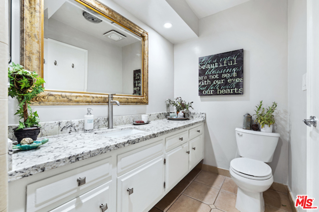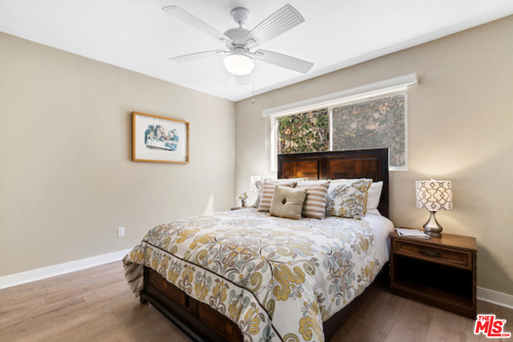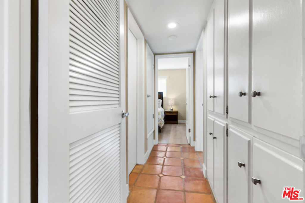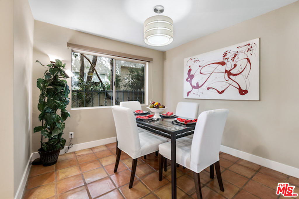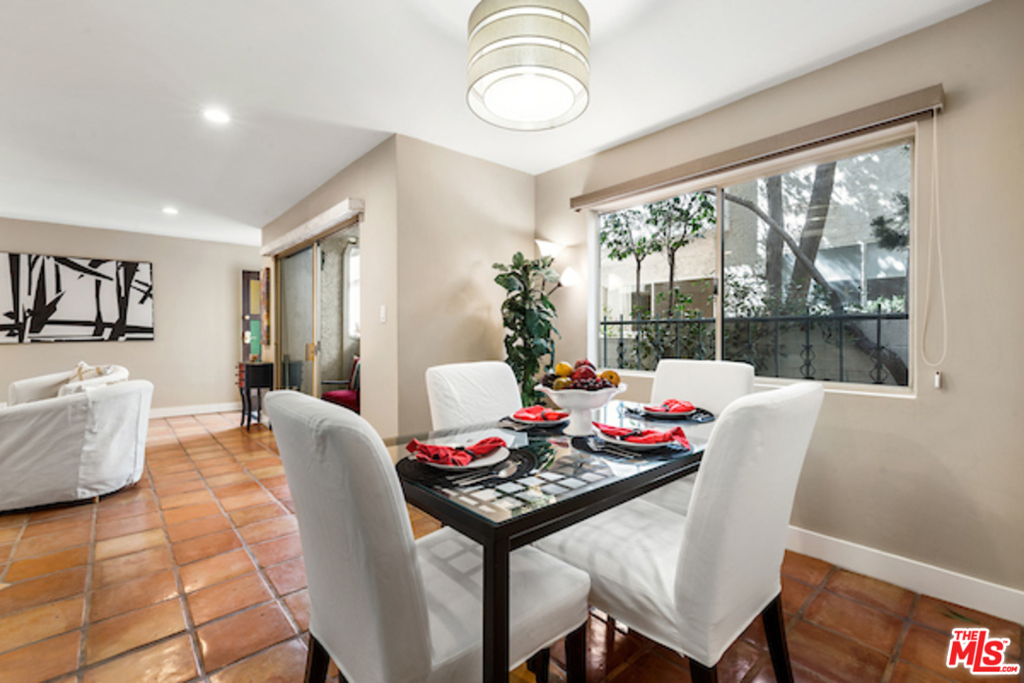 Character and Charm in this Mediterranean Condo with Modern Style! Terracotta tiles throughout creating a rustic old-charm feel with the living room that opens to your private patio.There are recessed lights throughout the living area, kitchen w/ granite countertops and stainless steel appliances, good size dining area, bathrooms with granite counters, large extra storage turned into a walk-in laundry room w/ shelves, forced air heating, custom blinds throughout for privacy, ceiling fans and wonderful greenery views from the bedrooms, master suite w/ walk-in closet. One car garage w/lots of storage space. Located in the Franklin School District. This is located in a quiet neighborhood in an intimate 6-unit complex on a tree lined street. Close proximity to Montana Ave and the treasures it offers, restaurants, shops, cafes close by. Very close to the beach and Palisades Park.