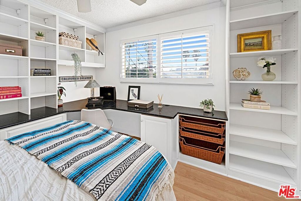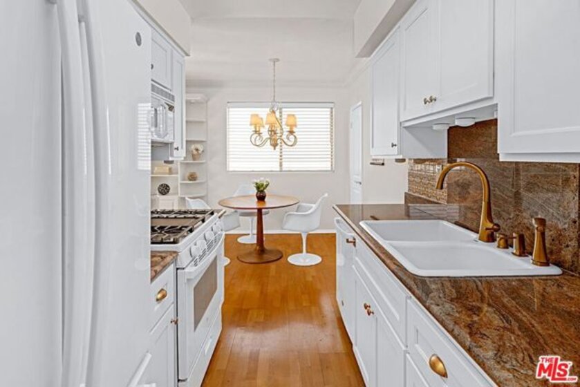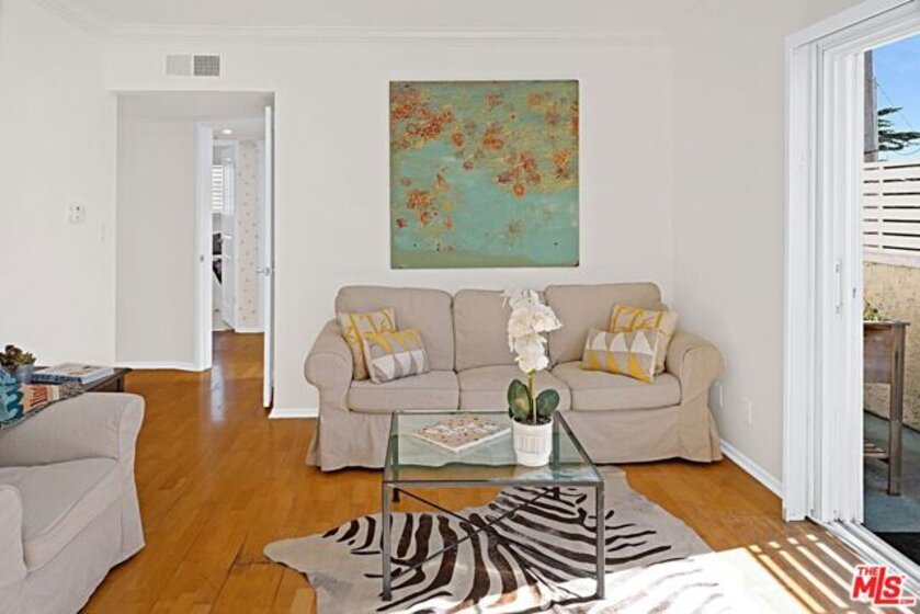 Light-filled, west-facing 2 bedroom, 2 bathroom end unit located in the heart of Santa Monica's highly sought-after Montana Avenue neighborhood. Unit #6 at 852 15th Street combines thoughtful upgrades, custom built-ins, and exceptional natural light, creating a private and inviting retreat with windows on three sides and only one shared wall. The sun-splashed interior features wood floors, crown molding, and a comfortable open living space with custom lighted built-ins. The updated kitchen offers granite countertops, dual sink, new cabinet doors, ample storage, a large walk-in pantry, and newer appliances including a French-door refrigerator and ultra-quiet dishwasher. The primary suite features custom-fitted closet and updated bathroom. The guest bedroom includes a fully built-in home office with shelving, file drawers, cubbies, and space for a guest bed. Bedrooms feature Pergo flooring. The updated bathrooms include marble countertops, a walk-in shower, and a skylight in the primary bath for year-round natural light. Additional improvements include in-unit washer and dryer, rewired electrical outlets, new interior doors, updated plumbing and fixtures, and an efficient split A/C system. Enjoy a private west-facing balcony with privacy screening and a resurfaced deck perfect for year-round sun and plant lovers. The home includes a private one-car garage and is ideally located on a quiet, non-through street just moments from Montana Avenue's cafes, restaurants, boutiques, grocery stores, transportation, and the beach is just a short distance away.