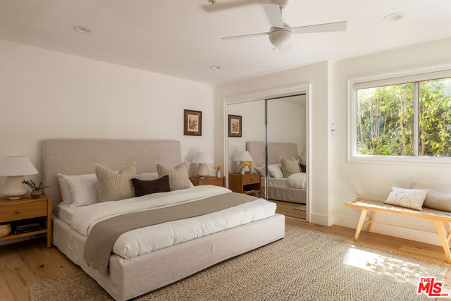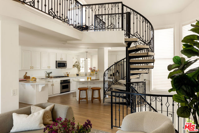 Just one block from Montana Avenue and seven short blocks from the beach, this beautifully updated townhome captures the essence of Santa Monica living. Spanning three levels, the light-filled residence features an open floor plan with spacious living areas and blonde hardwood floors that extend into the beautifully updated kitchen. A bright and versatile loft space above the main level opens to a large private deck, ideal for entertaining, working from home, or simply lounging with a beautiful view. Each level offers its own outdoor retreat, seamlessly blending indoor and outdoor living in true SoCal style. Just steps up from the private two-car garage with direct access to the unit and extensive floor-to-ceiling storage, you'll find two bedrooms with newly installed hardwood floors. The serene primary suite includes a tranquil outdoor patio and a fully remodeled, spa-like ensuite bathroom featuring heated floors, dual vanities, a walk-in shower, and a freestanding soaking tub. The second bedroom enjoys abundant natural light and has its own private full bathroom. The first floor also features a newly remodeled powder room with a custom travertine sink and convenient access to the updated laundry area. The prime location is close to shops, restaurants, and the beach. This home offers the perfect combination of style, convenience, and comfort.