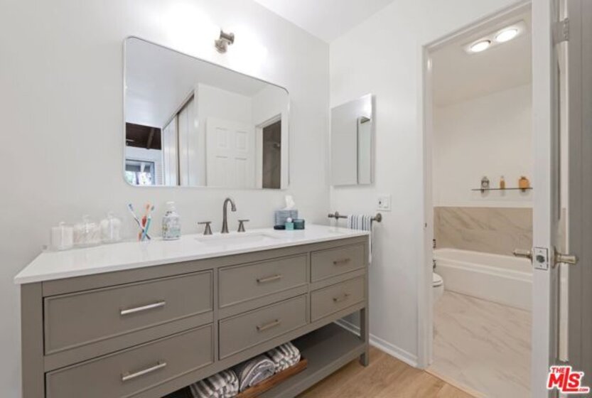 Location, location, location. Minutes to Montana Avenue shopping, restuarants, markets and the Beach. This 2 story townhouse in prime Santa Monica location is light and bright with an open floor plan. This attractive end unit has only one common wall. Formal entry with powder room and guest closet open onto a large Living space and dining area that overlooks the Kitchen with plenty of cabinetry and granite counter tops and new flooring. Main living space has hardwood flooring, fireplace and sliding doors that open onto a private large patio area great for enteraining. Upstairs are 2 bedroom + 2 baths and a closet. Primary Bedroom has vaulted ceilings, lots of closet space and another balcony. The Primary bathroom has been totally remodeled, separate tub and shower. Central A/C & Heat. Good size 2nd bedroom with closets. Side by side parking in gated garage along with your own washer/dryer. (located in garage).