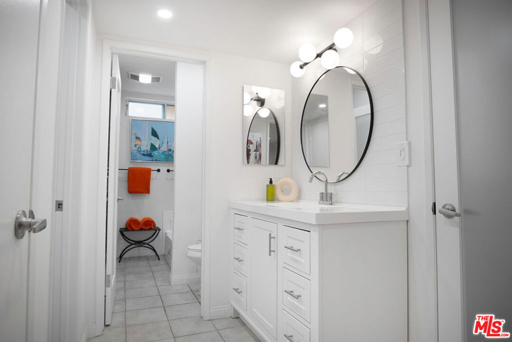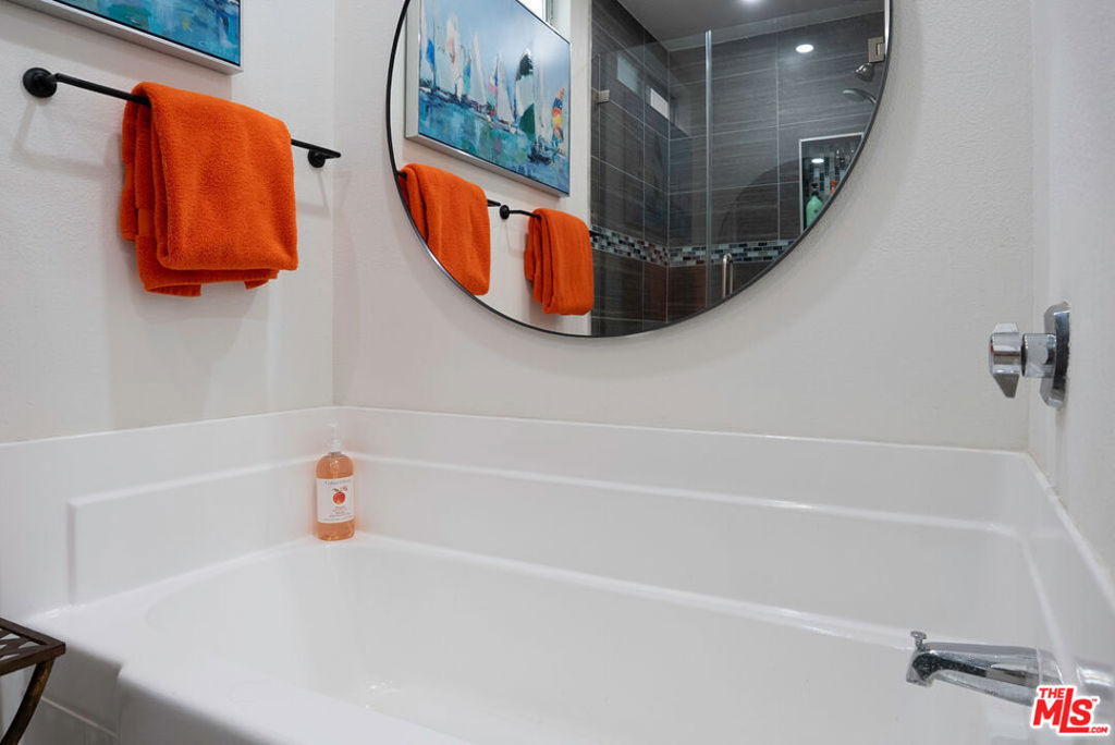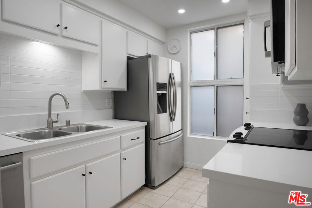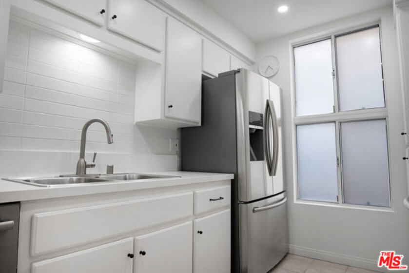 Stunning Mid Century renovated architectural, steps to Montana Ave! Unique Light & Bright top floor unit features vaulted ceilings, clerestory windows, hardwood & tile flooring, recessed lighting, quartz countertops, fireplace, central air & heat, full size washer & dryer -(inside unit). New designer kitchen sparkles with Walker Zanger Tile, new Bosch@ dishwasher, new quartz countertops, new Samsung@ fridge new sink, new disposal, new plumbing. Huge 1 bed, 1 bath with large closets. Additional luxuries include -two designated tandem parking spaces in a secure garage with storage. All windows are double pained for great insulation. Serene outdoor terrace with large sliding doors from the bedroom & living room create a perfect indoor - outdoor flow. 12 blocks to THE BEACH, quiet 10 unit building. Faces South and North. Earthquake insurance included in the low HOA dues. NO rental restrictions! Recent HOA upgrades include: new hot water heater, new garage gate motor, new balconies, new structural reinforcement, new main sewer-line! A rare unit in the best neighborhood! ( dining room light fixure and TV's not included in sale).