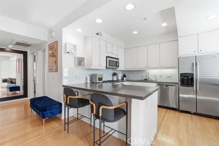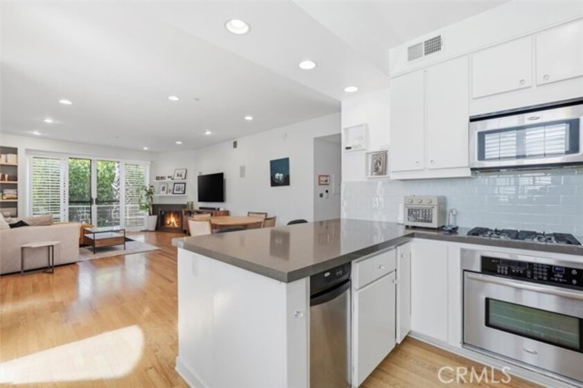 One block from Montana Avenue, this beautifully remodeled two bedroom, two bathroom condo places you in one of Santa Monica’s sought after neighborhoods. Set within a well maintained four unit building, the 1,190 square foot residence offers a bright open floor plan filled with natural light and designed for effortless living. The spacious living room is anchored by a gas fireplace and flows seamlessly into the dining area and updated kitchen, creating an ideal layout for everyday living and entertaining. The kitchen features quartz countertops, stainless steel appliances, subway tile backsplash, and a breakfast bar for casual dining. Sliding doors open to a private patio surrounded by lush greenery, creating a peaceful indoor outdoor connection from both the living room and the primary suite. The primary bedroom features built in closets and a beautifully remodeled bathroom with marble finishes and a dual vanity. A second bedroom and bathroom provide flexibility for a home office or additional living space, along with the convenience of in unit stackable laundry. Additional highlights include hardwood floors, one covered parking space with a private storage closet, and a low HOA with a pool and spa. Enjoy access to the boutiques, cafes, and restaurants of Montana Avenue, the beach just minutes away, and close proximity to downtown Santa Monica. Thoughtfully updated and move in ready, this is an exceptional opportunity to own in a prime Santa Monica location.