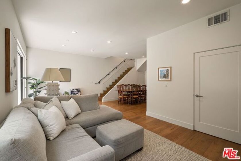 Stunning and modern, this 3-bedroom, 3-bathroom townhouse, built in 2015, offers the perfect blend of style, comfort, and convenience. Ideally situated near Montana Avenue's vibrant dining, shopping, and cafe scene, this home boasts over 1,500 sqft of thoughtfully designed living space with gorgeous hardwood floors, central air, and multiple outdoor spaces. The gourmet kitchen is a chef's dream, featuring top-of-the-line stainless steel appliances, a gas range, and sleek finishes. The spacious living room seamlessly connects to a large patio through folding doors, creating an effortless indoor-outdoor flow. The flexible floorplan includes space for a dining room, a cozy den, or even the option to enclose it as a main-floor bedroom tailored to fit your lifestyle. The primary suite is a true retreat, offering a generous walk-in closet and a luxurious en-suite bathroom with a soaking tub and a beautifully tiled shower. Generous private rooftop deck with breathtaking views that stretch all the way to the ocean. Additional highlights include elevator access to the gated garage. 2-car side-by-side parking in the secure garage with private storage room, ample visitor parking, and a location that perfectly balances urban convenience with coastal charm. This townhouse truly has it all!