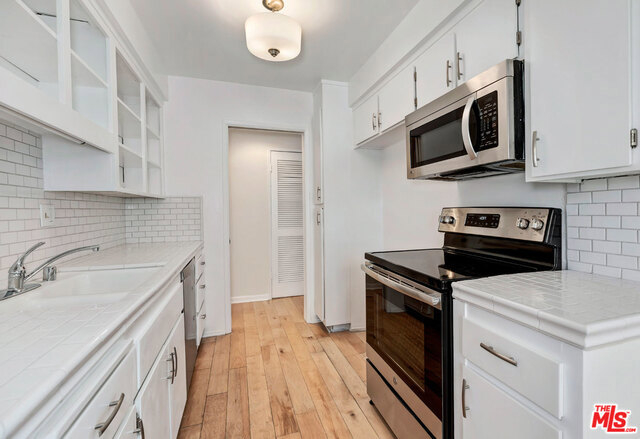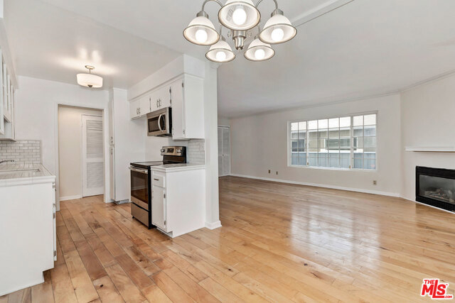 A FRONT FACING WALK UP CONDO WITH A PRIVATE PATIO AND DOUBLE DOOR ENTRY, FLOODED WITH NATURAL LIGHT, WOODEN FLOORS THROUGHOUT, INSIDE WASHER AND DRYER, GATED GARAGE WITH SIDE BY SIDE PARKING. LARGE LIVING ROOM WITH GAS BURNING FIREPLACE, DINING AREA WITH LARGE WINDOW OVERLOOKING THE FRONT GARDEN AREA. PRIVATE MASTER SUITE. THIS 2 BEDROOM 2 BATH CONDO IS IN ABSOLUTE MOVE-IN CONDITION LOCATED NORTH OF WILSHIRE IN THE ROOSEVELT SCHOOL DISTRICT, SECONDS TO MONTANA SHOPS, CAFES AND RESTAURANTS, 11 BLOCKS TO PALISADES PARK AND THE PROMENADE.