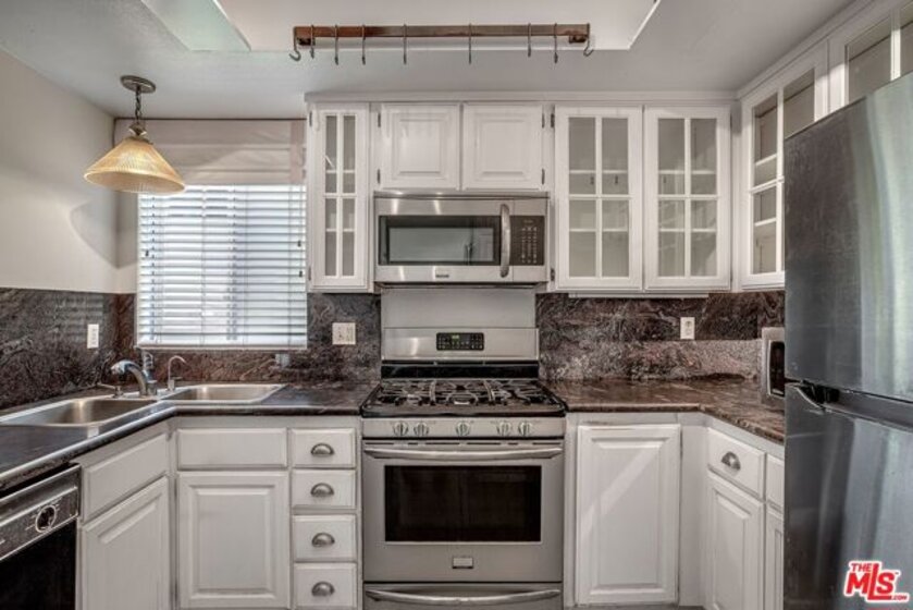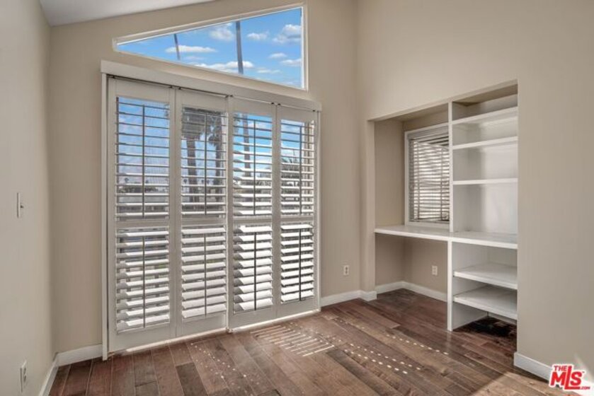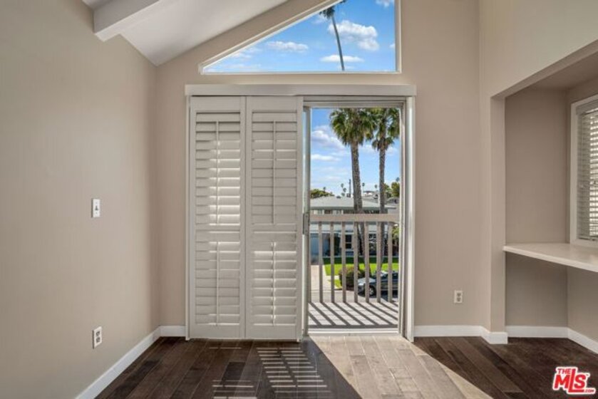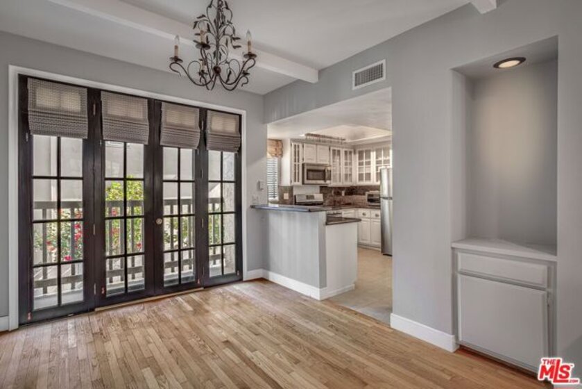 Lovely private front unit. Light and bright living room with fireplace, French doors, Harwood floors leading to an ample sized patio. Dinning room features a balcony for morning coffee. Granite counter tops in the kitchen, cabinetry needs reimagining. Primary suite has a charming loft which can be used as an office, reading room, meditation room or yoga studio. Unit comes with an attached two car garage with storage and laundry. Minutes from shopping, restaurants, schools and the beach.