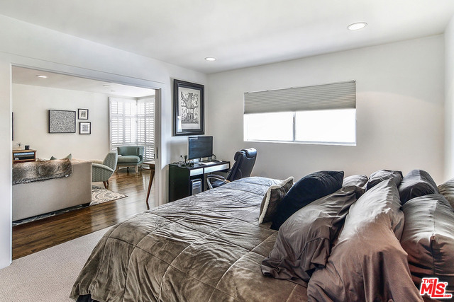 Located in the heart of Santa Monica, this ultra chic top-floor condominium features an open floor plan, one common wall, wood floors, walls of windows, and skylights throughout. Generously sized bedrooms with en-suite baths, luxury designer finishes such as mosaic tile, opaque glass counters, walk-in shower, and deep soaking tubs. Gourmet kitchen with a vented range hood, stainless steel appliances, breakfast bar, and dining area. Enjoy spending your summer days on the expansive rooftop patio with 360-degree views where a fantastic coastal breeze and custom bar with wine cooler awaits you. Just seconds from all that Montana Ave offers, award-winning schools, and the beach, the location of 947 18th st will be the envy of all. Stackable w/d, two parking spots and additional storage, with low HOAs that include maintenance, gardening & earthquake insurance. Franklin Elementary!!
